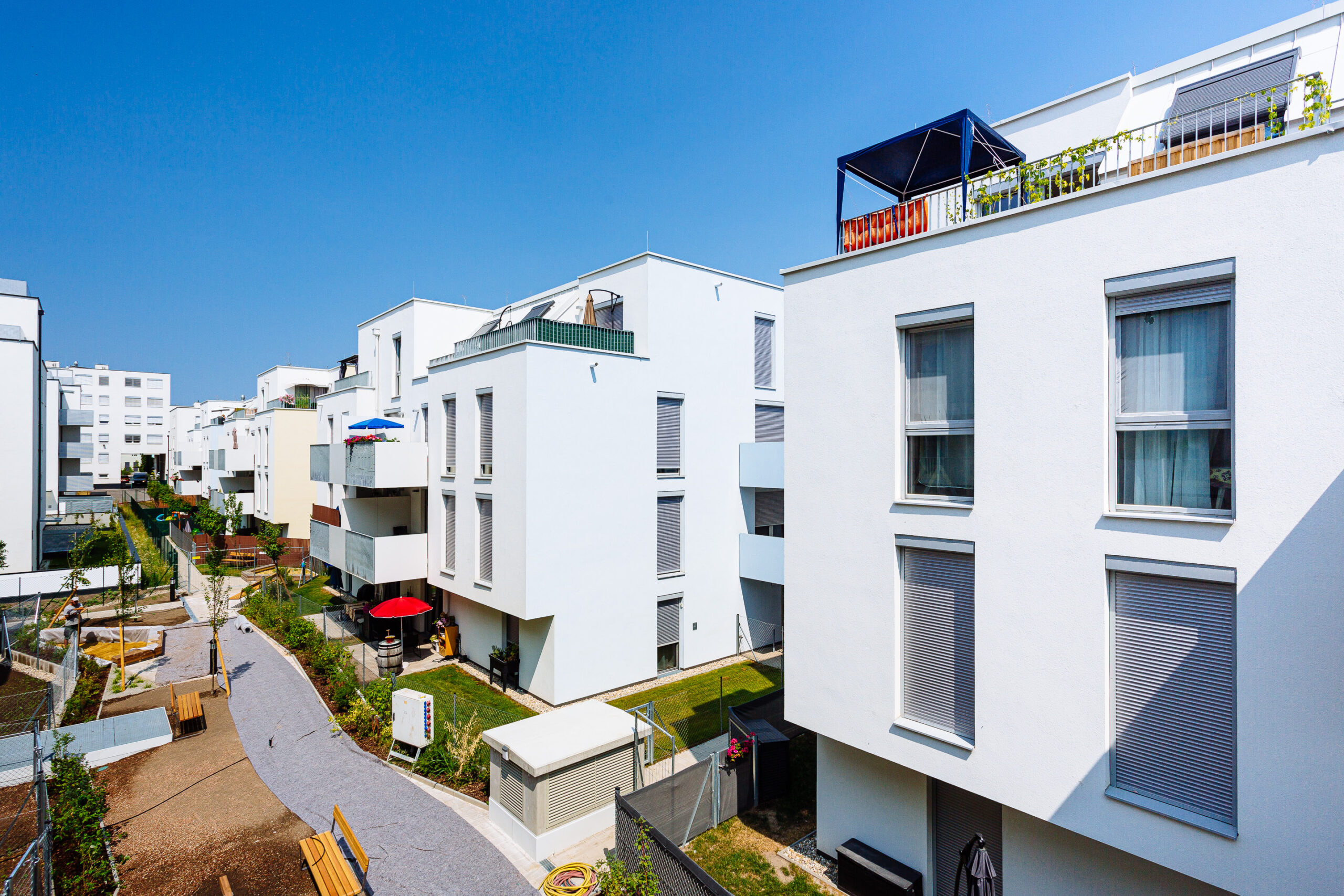 Zentral im 22. Wiener Gemeindebezirk entsteht eine wunderschöne, kleinstrukturierte Wohnhausanlage mit 80 freifinanzierten Mietwohnungen aufgeteilt auf 4 Einzelgebäude eingebettet in eine Gartenanlage.